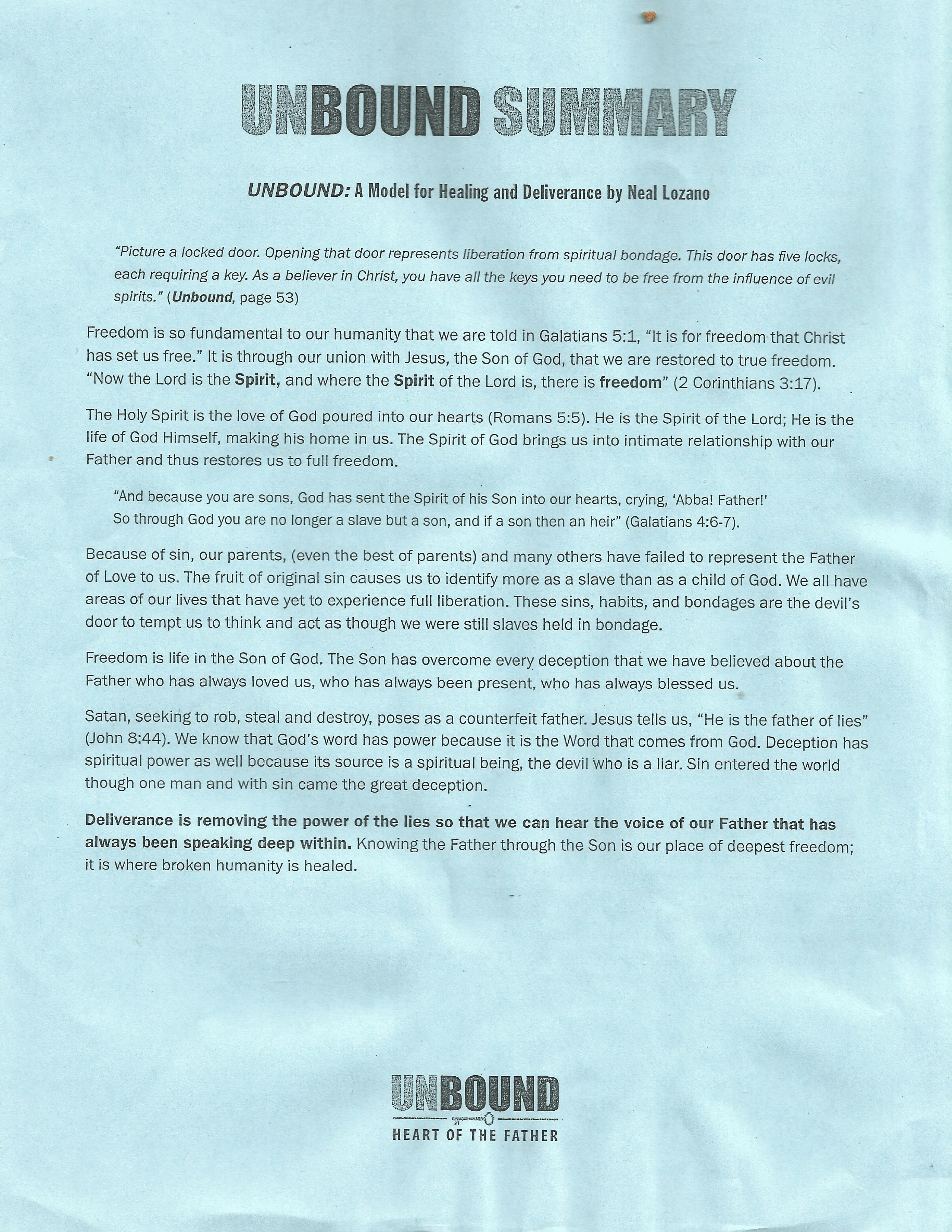 A MODEL FOR HEALING AND DELIVERANCE – UNBOUND SUMMARY